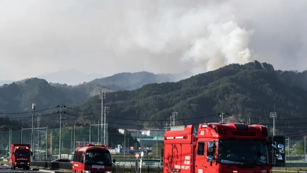 Japanische Feuerwehr wegen Waldbränden im Großeinsatz