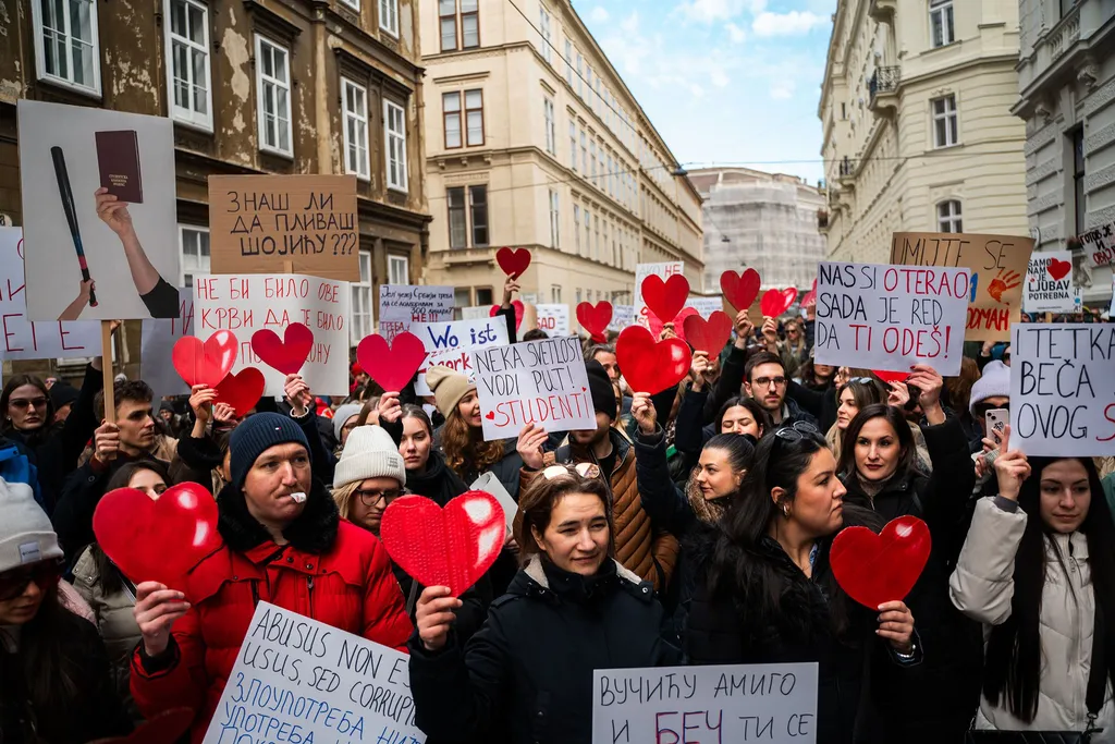 Die Uhrzeit des Protests ist symbolisch gewählt: Am 1. November 2024 um 11:52 Uhr stürzte in der serbischen Stadt Novi Sad ein Bahnhofsvordach ein und tötete 15 Menschen. Seit dem finden in Serbien fast täglich Proteste statt, an über 60 Universitäten streiken Studierende und Dozenten. Das Unglück wurde für Regierungskritiker zum Symbol für Korruption und Behördenversagen.