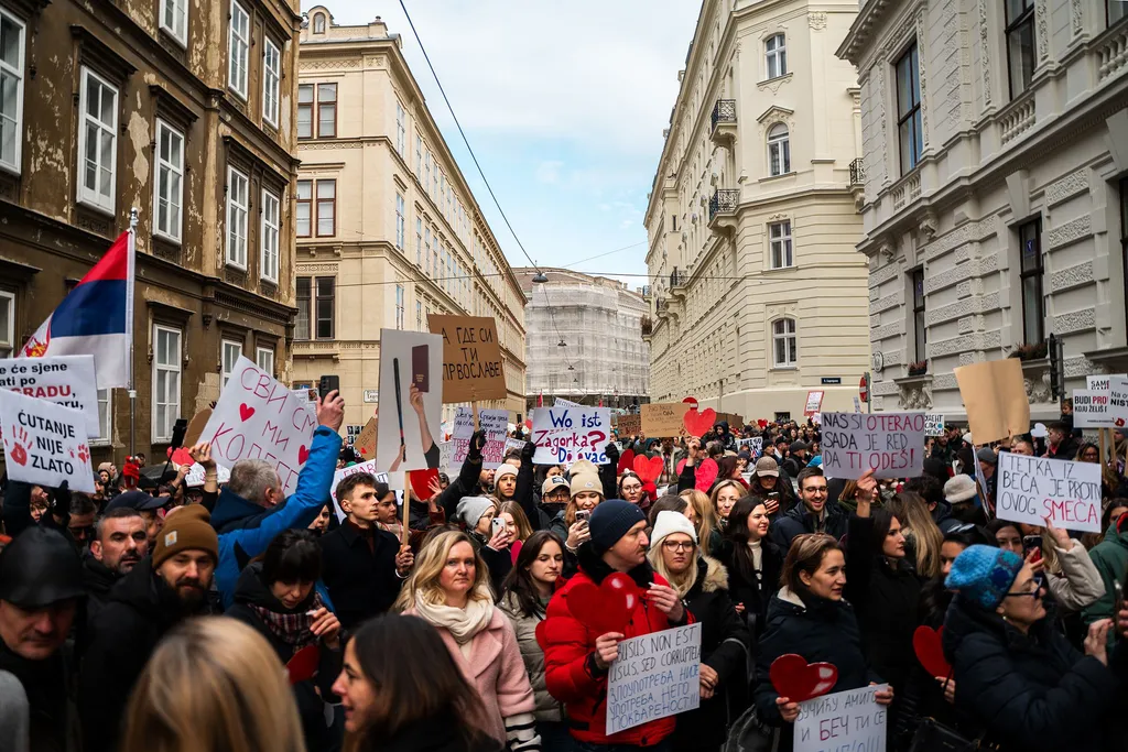 Tausende Menschen, angeführt von Studierenden, protestieren in Serbien seit drei Monaten gegen Korruption und die autoritäre Regierung. Die Proteste reichen mittlerweile weit über die Grenzen Serbiens hinaus: Auch die serbische Community in Wien drückt ihre Unterstützung aus.